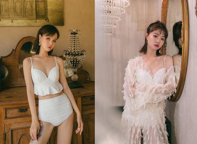 一件式的泳衣,出游最方便。去海边拍照,一定不能少了一件白色的泳衣。缎面材质的白色连体泳衣,能和海浪融为一体,上镜不会错。而且垂感十足的缎面还能随着海风飘扬,超级有feel 。简单的荷叶边和裙摆设计,遮住该遮的地方,一点也不暴露,反而优点小性感。