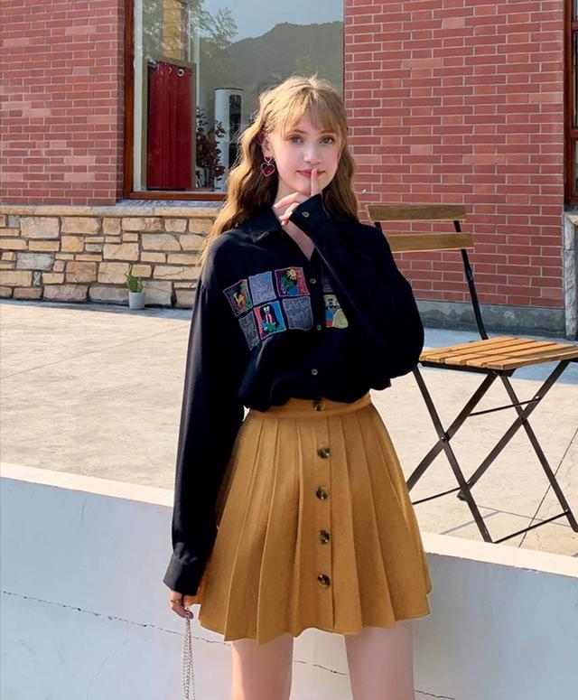 下身的姜黄色百褶裙也是减龄的神器,百褶裙就给人一种非常青春的感觉,但是我们平时看到的百褶短裙款式都是比较简单的那种,所以看得多了难免会有一点疲劳的感觉。这件裙子则会给人一种比较新奇的感觉。所以这一套衣服穿在身上绝对可以不帮你轻松搞定各种场合,让你看起来更加年轻。