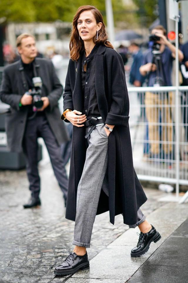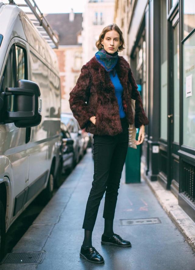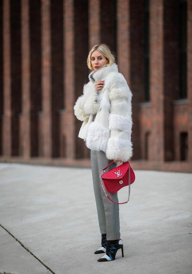 还有今年秋冬非常火的羊羔毛外套,同样可以用烟管裤来搭配。有些仙女因为羊羔毛外套毛茸茸所带来的臃肿感而不敢尝试,担心给人虎背熊腰的感觉,事实上,只要搭配直线条的灰色烟管裤,就可以减少整体的膨胀感,给人上松下紧的层次感,从而在视觉上有很好的减重效果。另外,羊羔毛外套自带的甜美可爱和烟管裤的性冷淡风格相碰撞,更是别有一番摩登风味。
