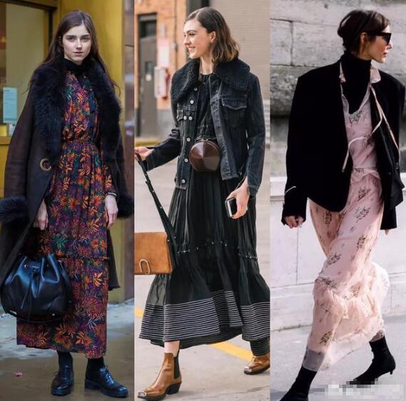 首先是裙子的长度问题。我个人认为秋季不太适合膝上短裙,即便是穿条很厚的丝袜,看着还是会觉得有些冷,我这里推荐长款连衣裙或半身裙,长度可以到脚踝或者是迷笛裙。