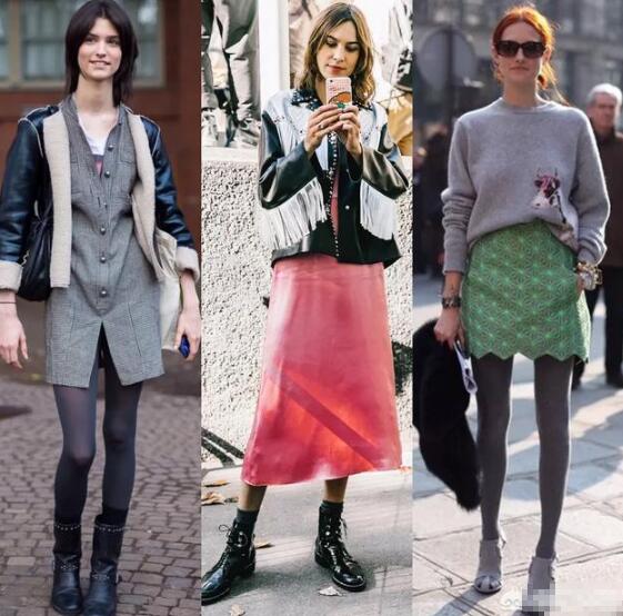 马丁靴、及裸靴也是很好的选择,首先马丁靴自带的帅气的感觉,与裙装混搭起来也别有一番美感,而及裸鞋更是百搭,尤其是尖头的鞋子,会显得腿部线条很好,显瘦又显高。