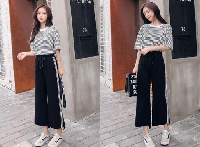 好看又不挑人穿的条纹休闲裤,裤子是侧边条纹的设计,而且同样是九分的长度,让各种女生都可以轻松驾驭的,腰带还带有可以调节的松紧带,配合整体的裤型,看起来百搭又显身材,搭配条纹t恤,横条纹的设计更显气质,时尚服装。穿上清爽多了。