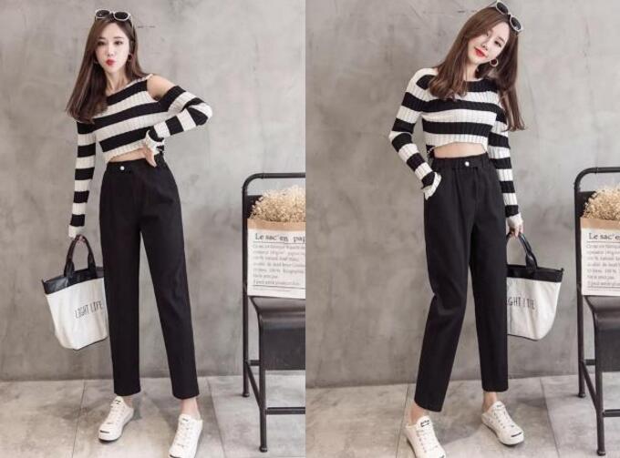 春天虽然穿裙子比较甜美风,但喜欢穿裤子的女生,要穿裤子的话那就首选九分休闲裤,搭配各种t恤,清爽又百搭。