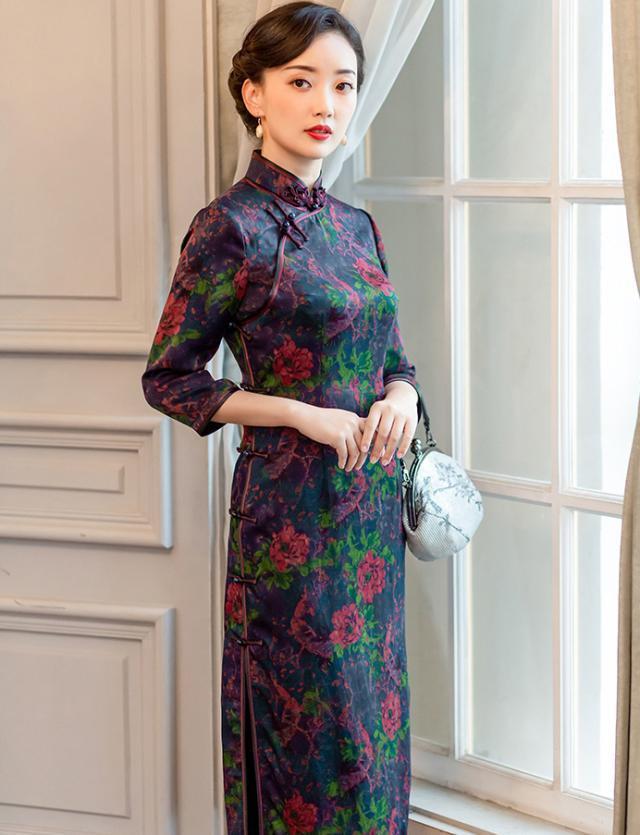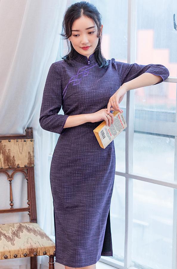 湛蓝色的色调沉稳大气,隐含着从容恬静的深邃与静雅,改良的设计简约高级,穿衣技巧。仅仅用线条来展现女子的柔美与知性气质,立领含蓄典雅,领口和袖口刺绣花,极富诗情画意,勾勒出遗留在流年里的岁叠,明丽富贵,彰显出古典高贵的品格,整体以一种倾城之姿,与纤尘不染的孤傲,演绎着极致的魅力。