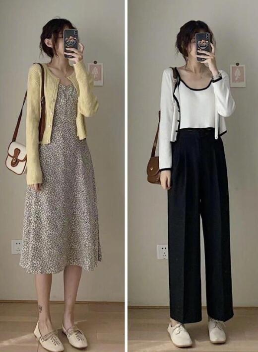 长袖的针织开衫,会更加保暖一些。如果是身材纤细的姑娘,可以选择一些修身的造型。可以更完美的展现出丰盈的身段,搭配一条波点印花的连衣裙,精致的收腰款式呈现出更加迷人的魅力。这样的穿搭,格外的利落大方,也是优雅时髦的。