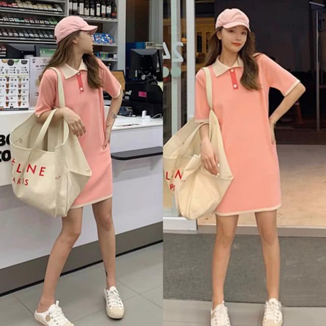 学院风的一款连衣裙,棉质的材质,上身亲肤舒适,又很透气,超适合夏天的炎热天气,领口、袖口和裙摆都是白色的设计,搭配粉色的裙身,形成很强大的层次感,这样的裙子往往给人一种很温柔,很美的感觉,直筒的裙型,是不挑身材的款,无论谁穿都好看。