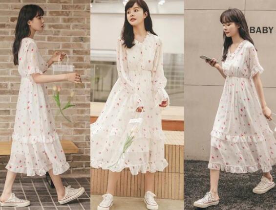 3、过时的裙子就别穿了,来一条今年夏天最美的碎花连衣裙吧,仙气感十足的红色小碎花,瞬间提亮了你整体的造型,显气质的同时,小碎花连衣裙怎么搭配?又甜蜜,v领的设计,微微露出的锁骨线条,勾勒出女性的性感美,雪纺的材质,夏日穿上让你时髦显个性,而且大部分女生一眼都会爱上的款式,腰部是高腰的设计,也是女生们喜欢的显瘦款,宽松的裙摆,怎么穿都好看显瘦,裙摆的木耳边装饰,更添甜美feel,怎么穿都美,看完我都忍不住想买了。