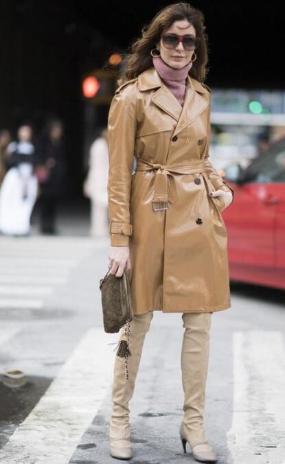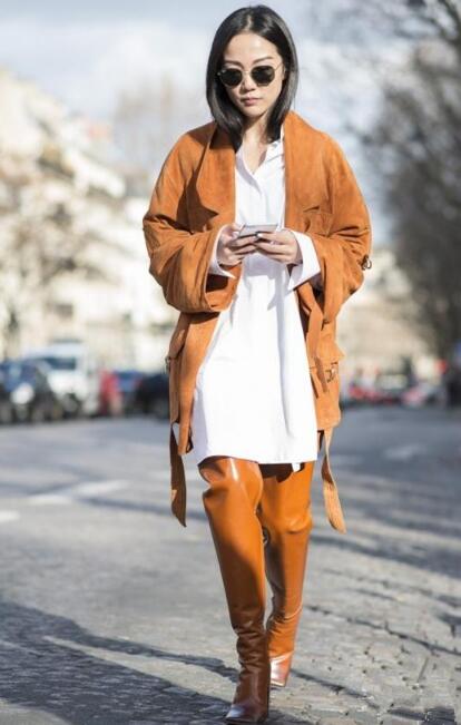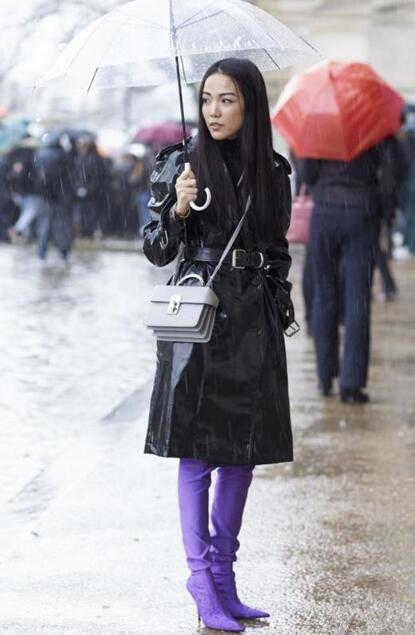 小个子穿靴子担心显矮?当黑色漆皮大衣,遇上紫色靴子,高挑又气质,让你在人群中脱颖而出。腰间束上黑色腰带,分分钟呈现小蛮腰既视感,也是这6款中气场强大的一款搭配,打造酷劲女神范,你心动了吗?