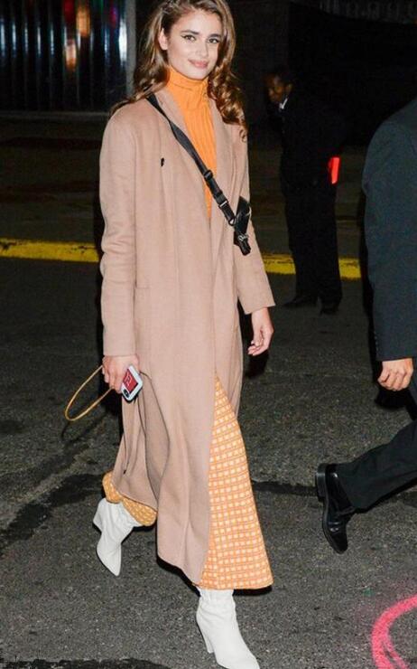 格纹元素是永不过时的,怎么搭都是好看的,尽显英伦风气息,十分撩人!要说今冬的标配是什么?pick桃粉色大衣,以及橘黄色高领毛衣,时髦之余更是保暖,让你逆龄成18岁的少女。下半身搭配橘色格纹阔腿裤,靓丽又不失甜美气质,拯救你不完美的身材。脚上搭配白色短靴,简约又格调,打造柔美洋气范,元气满满!