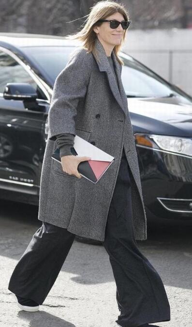 自带高级感的灰色,深受时尚精的喜爱。选择灰色大衣+黑色阔腿裤,有型又拉风,拯救你不完美的身材。脚上踩着黑色懒人,精简中带有一丝舒适,打造休闲文艺范,活力值满分,你学会了吗?