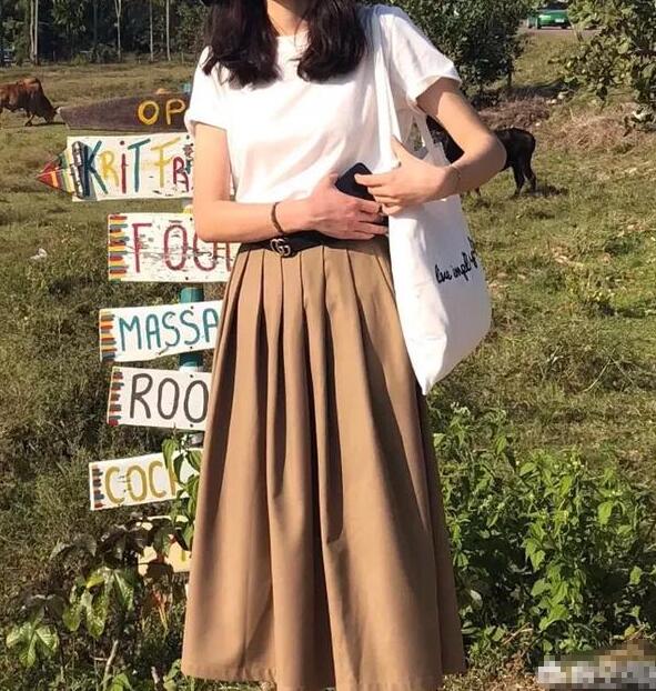 若穿够了连衣长裙的话,不如试一下半身裙。配一件T恤或者无袖T恤都可以,半身裙可以选择牛仔的或者雪纺的都可以,再搭配一双帆布鞋或者小白鞋,这样就可以啦。