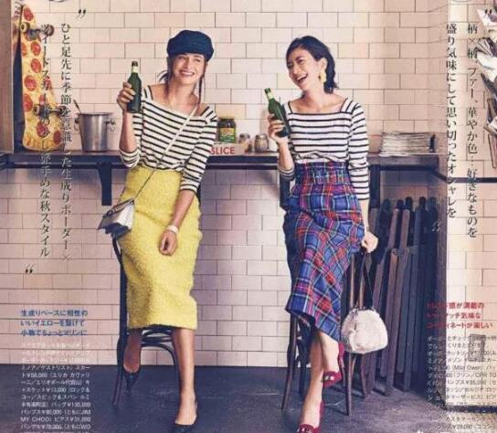 日系里面条纹衫和包臀裙可是一定少不了的,由于亚洲人身材相似,并不是很高,高腰的包臀裙能很好的修饰身材,黄色的高腰包臀裙搭配黑白条纹上衣,再搭配一双尖头高跟鞋,时髦优雅。