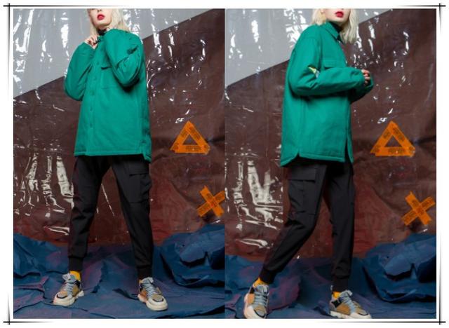 绿色的外套也是很显肤色偏白的一款外套,超级抢眼不会失去时髦感,搭配经典百搭的黑色工装裤,色彩搭配在一同很显得大气,时兴范十足,女生穿搭起来也十分显帅的哦。
