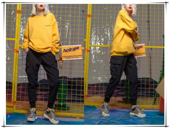 黄色的卫衣突破沉闷感,很盛行的一个色系,上身效果也是十分不错的哦,版型能够选择宽松一些,下身搭配经典的工装裤,帅气十足,搭配上一双休闲鞋,韩范十足,想要耍帅的搭配。