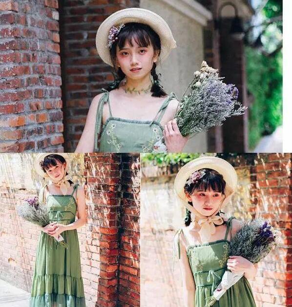 一看到这款裙子我就被惊艳到了,细细的绑带吊带很貌美,低调复古的绿色,结合小雏菊的刺绣显得几分清新动人,胸前的木耳边和裙摆的不同颜色拼接增添了少女感,搭配凉鞋单鞋都是非常合适好看的。