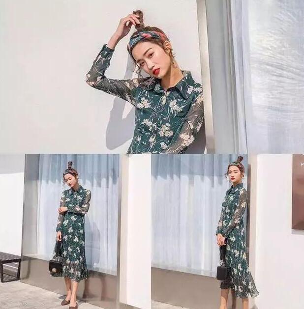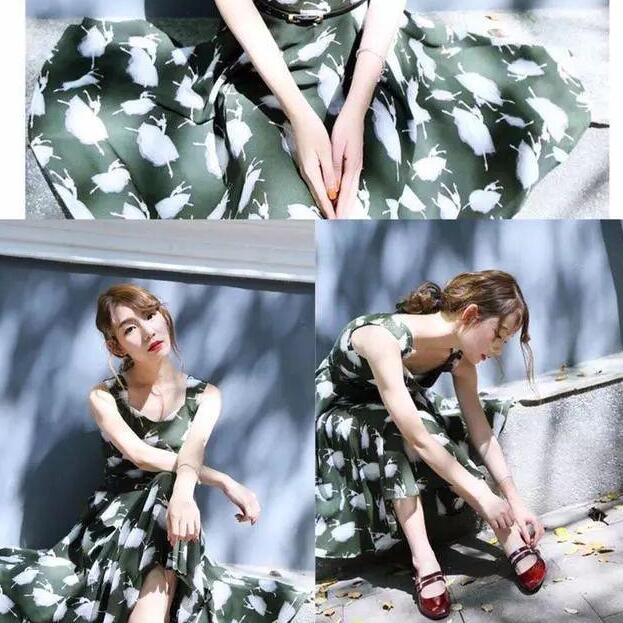 春天怎么能少了一天花裙子呢?洋气而又复古的绿色上身效果非常好看,加上印花更显得耐看,雪纺得面料走路起来轻盈飘逸,搭配平底鞋也会让你看起来显高显瘦的一条裙子。