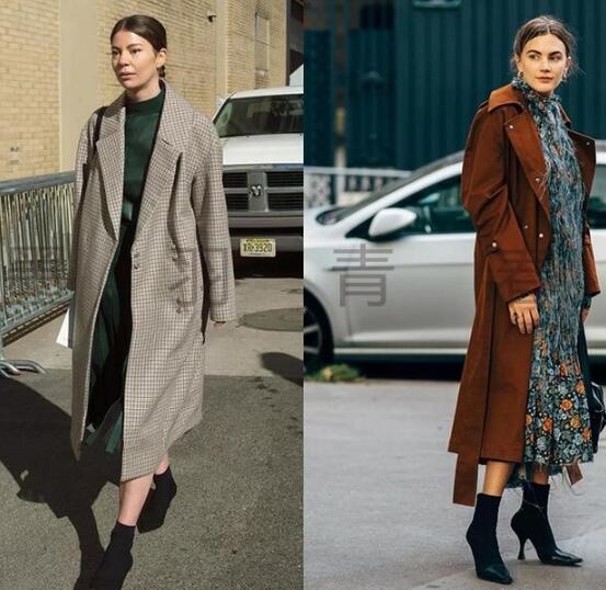 立冬穿裙子,露出小腿和脚踝骨,需要一双裸靴来保暖加持,高领的碎花连衣裙搭配焦糖色大衣,配上今年流行的细高跟袜靴,拉风时髦,怕冷的女生穿上裤袜,冬天,照样也可以美丽动人。