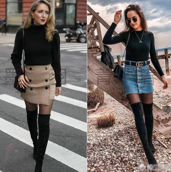 高腰的短裙,想要又显瘦,尤其是A字短裙和包臀裙,上身选择修身的毛衣,再搭配一双过膝长靴,立马让你拥有模特般的大长腿,尽显窈窕好身材。