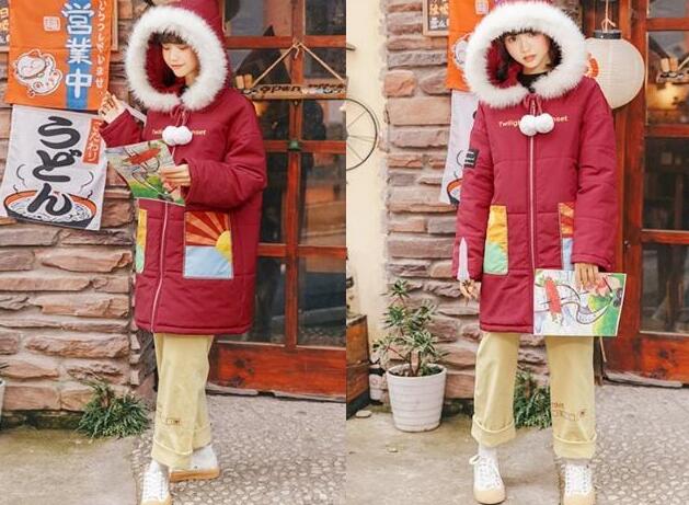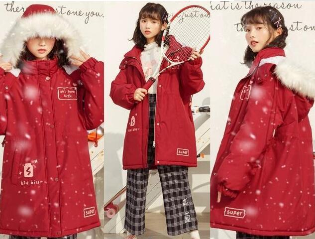 红色棉衣是2019新年必穿的一件御寒的冬季外套,它还是中长款的版型设计,可以说御寒的效果更加好的,里面随意搭配一条米色的阔腿裤,轻松就遮住你不完美的腿型了,超级显瘦哦,这么美的棉衣外套,不管你怎么穿上都是那么的好看时髦!