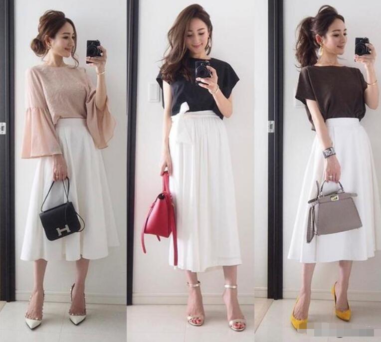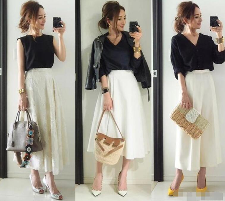 矮个子女生想要穿得更加成熟,那么高腰半身裙一定要安排起来,它既能够让你看起来更加的高挑,同时也会让你穿起来更加的温柔与知性。粉色喇叭袖雪纺上衣搭配一款白色高腰伞裙,再搭配一双尖头铆钉高跟鞋,矮个子女生成熟穿搭图片整套搭配看起来温柔又淑女,尽显成熟女性魅力。纯色上衣搭配白色高腰百褶裙同样超好看,看起来简约气质又不失温柔范。发型也很关键,可以随意的披下来,大波浪看起来也会更加的成熟有女人味,也可以扎成高马尾,看起来会更加的利落显高。