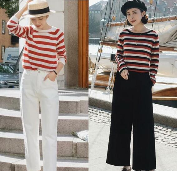 每天穿得精致温柔是件让人感觉很舒服很开心的事,尤其是针织衫更是让人身心愉悦。条纹衫是所有基础针织衫中最不挑人的,几乎所有的肤色所有的身形都可以尝试条纹衫的搭配。