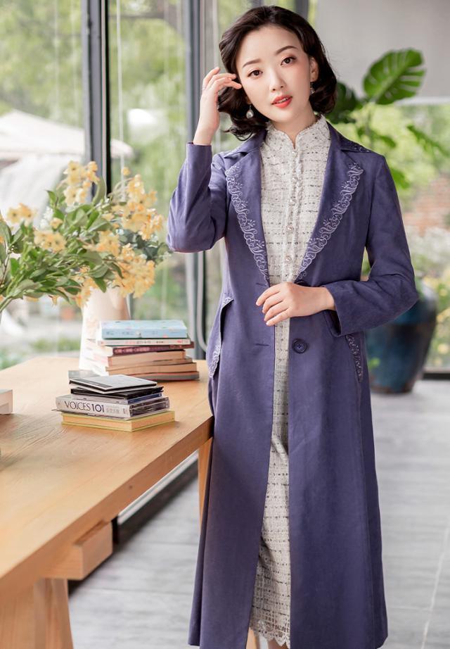 旗袍搭配风衣是永恒的经典,既具有东方式的优雅,又饱含西方摩登的韵味,复古又时尚的独特风情,气场瞬间提高两米八。白色的针织旗袍装,清新恬静,搭配紫色的风衣,利落又帅气,以风华绝代之姿,让时尚为之臣服。