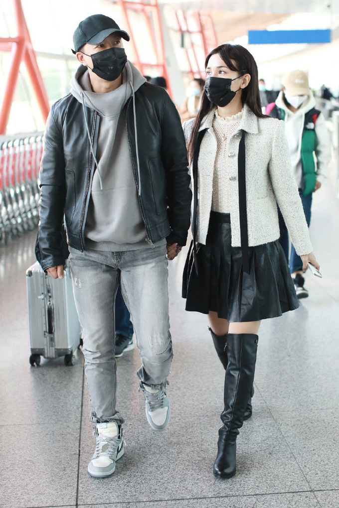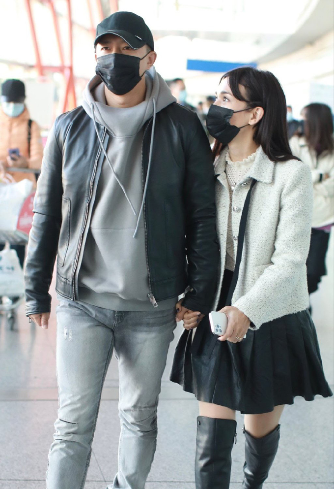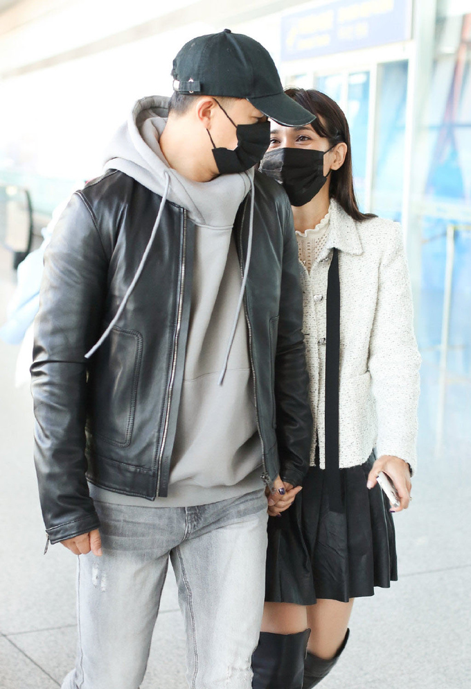 11月20日,许久未见的两人合体现身北京机场,当天两人一路牵手同行,还时不时对方大方秀恩爱。两人当天打扮得也非常年轻,韩庚灰色卫衣配黑皮衣,下身是浅色牛仔裤和运动鞋,十分休闲时尚的装扮。妻子卢靖姗打扮得也像个年轻女孩,她穿一件短大衣配皮短裙和高筒靴,又酷又甜,女装搭配,这身打扮一点看不出已经35岁了。