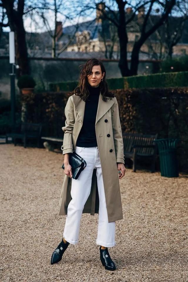 尖头靴是打造女神穿搭风格的有力武器,它自带的高冷元素,时髦又令人新奇,个性也不失低调,简约设计的鞋型,保暖,穿着也比较舒服,也非常的百搭。你可以这样穿搭,搭配风衣真的是个不错的选择,白色的裤子就搭配黑色打底衫,尖头靴就选这款黑色亮皮材质的靴子,为了不显得死板,可以选择稍微带有一点点线条,反而更接近于简约之道!