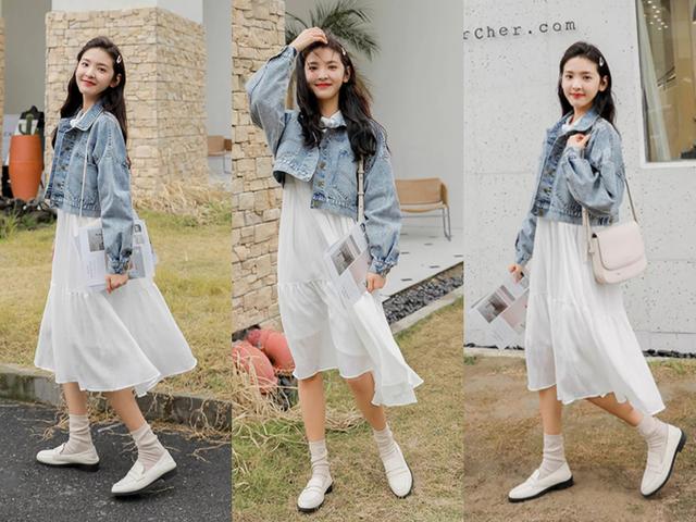 如果你不知道选择什么外套来做防晒衣的话,那么这款牛仔外套会是你很不错的选择,并且一年四季都可以穿着的一件外套,随便你怎么搭都可以,短款的设计,更好地凸显你的腰线,和连衣裙搭配起来,不仅显气质,中和了牛仔材质的干练感,变得又可以很淑女的哦,脚踏双乐福鞋就ok。