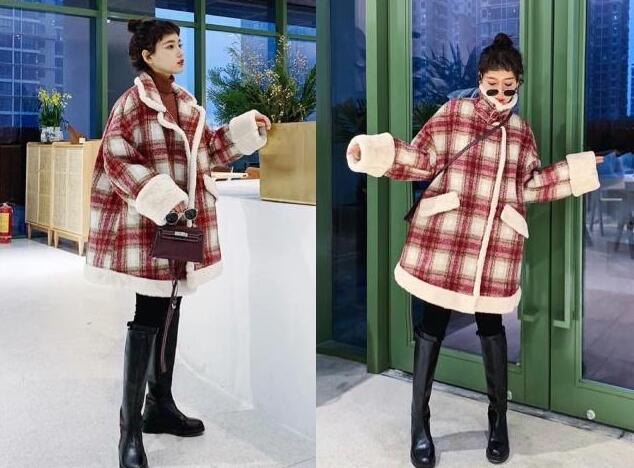 1、这款是属于红色拼接白色设计的格子羊羔毛外套,格子的元素更符合经典的复古元素,并且内层是厚实的羊羔毛内搭,穿上瞬间就变得温暖了起来,比大衣还要温暖多了,所以今年特别的流行,版型属于中长款的设计,遮肉很显瘦,比羽绒服还要显瘦。