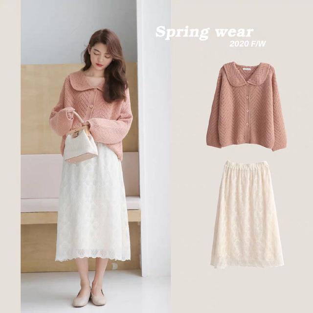暖暖的初春季节当然少不了浅色的衣装搭配了,藕粉色针织套衫可以带给人一种亲和感,时尚且优雅。宽松的翻领设计让瘦瘦的锁骨脱颖而出,也是展现身材的好帮手。对于粉色的搭配,必须要选择一款半身裙了,白色半身裙裙身上的小碎花图案设计细心巧妙,将少女的甜心与可爱尽情的释放了出来。出门逛街时,也可以拎一款自己心爱的包包,整个人是非常的亮眼呀。