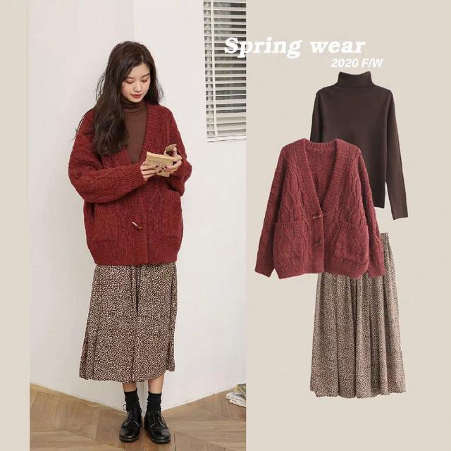 春天来了,但是初春的寒意还是很浓厚的,衣服搭配不仅仅要好看,保暖也是我们要考虑的一个重要因素。深红色的V领开衫外套就是美感与保暖并存的,面料防风效果好,解决了很多女人怕冷的问题。内搭褐色的高领毛衣是首选搭配,简约不失美感,裙装搭配小碎花半身裙,田园气息十足,也比较有文艺范儿。