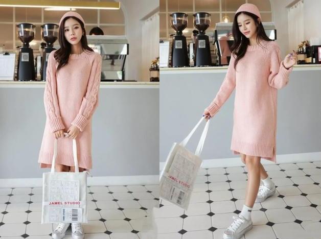 毛衣裙是在秋冬季节就已经开始流行的一款裙子,直筒版型的设计,谁都可以驾驭的版型,针织的材质又是修身显瘦的设计,穿上满满的淑女气质,花边的针织裙摆增添了个性感,带点肉肉的女生也可以驾驭的一款裙子,粉色又是那么的甜美风,搭配运动平底鞋,穿上就很美。