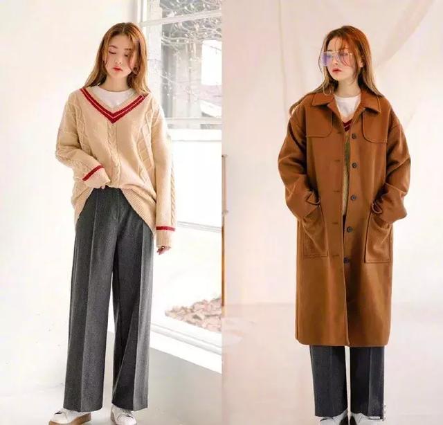 3/冬天自然离不开毛衣喽,内搭采用白色T恤+米色宽松的V领毛衣,毛衣领子上与袖口采用红色修饰设计,个性又不夸张。下半身搭配一条灰色的厚款棉麻休闲裤,如此休闲风与宽松毛衣打造出来的慵懒风真的十分的搭配。懂的小心机的妹子记得把你毛衣别进裤子里,让你显高有气质。外套选择一件卡其色毛呢大衣,这种颜色与整体十分协调,带着一种暖暖的气质。