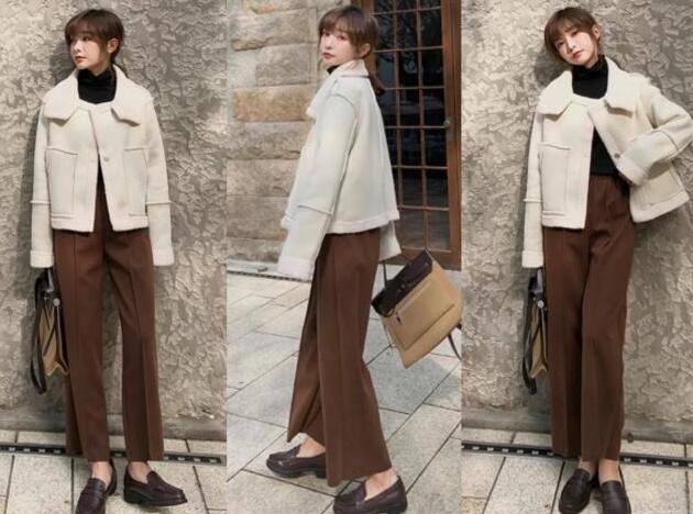 羊羔毛外套现在是越来越多人穿了,它保暖又时尚不累赘,过年聚会可以选择一件短装的羊羔毛外套,小编觉得短装更容易搭配衣服,3而且效果非常好,这款米色的短外套搭配一条棕色的阔腿裤,显得腿长又很舒服时尚!姐妹聚会穿什么衣服?