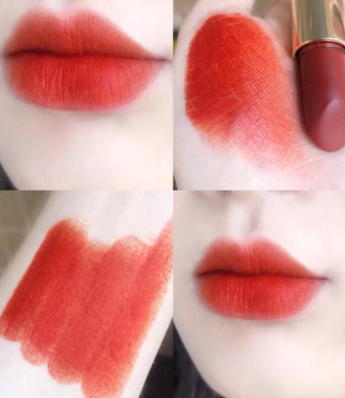 其实刚开始第一眼就是被壳子吸引的,其次看颜色以为是中规中矩的正红色,但是没想到上唇后真的完全被惊艳到。它的颜色是属于那种恰到好处的复古红,非常彰显高级的一款色号,薄涂厚涂是不一样的感觉。薄涂的时候抿开就是玫红色调,而厚涂则气场十足,有点偏向于带点复古的大红色,非常显气质而且巨显白。虽然是哑光的质地但是并不会感觉很干,不过还是建议大家在平常涂的时候最好先打底,这样颜色会更好看哦。