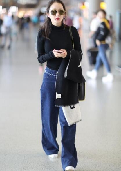 不要再穿牛仔裤了,因为有牛仔阔腿裤的存在。当它遇上黑色小高领,很是抢眼!将黑色小高领,塞进牛仔阔腿裤里,提高腰线同时更添一丝干练,想不抢眼都很难,打造大气随性范。脚上搭配小白鞋,打造休闲活力范,元气满满!