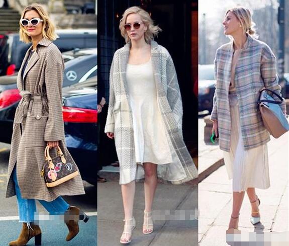 毫无疑问,这两年格纹元素的单品非常火,秋冬天格纹大衣就火得不得了,格纹大衣搭配技巧很多,单单格纹都有分很多种,大格纹,小格纹,种格纹,格纹的颜色也分很多,要选一件适合自己的格纹大衣,得好好花心思选择。由于格纹元素已经很丰富了,所以,内搭就尽量简单,不要抢了格纹大衣的范,当内搭不知道选择什么颜色时,可以选择白色,特别是鞋子选白色就不会出错。