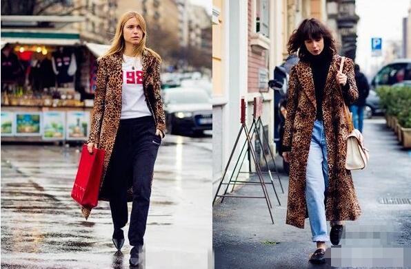 狂野性感的豹纹元素单品再2018年又卷土重来,可是还是有很多小姐姐不太敢挑战豹纹的时尚单品,豹纹大衣就更加不敢挑战了,我猜,可能你是在担心自己hold不住,一不小心就变成暴发户或土豪了,其实也不用太担心,只要找对了搭配的方法,搭配屋,就没问题。内搭黑色就肯定没错,今天介绍的两位街拍达人的造型感都是比较休闲的,左边的混搭效果稍微强烈一点,内搭白色数字T,白底红字很醒目,年轻感十足的白T,去掉了豹纹的成熟感。右边的模特内搭黑色高领毛衣,下装搭配浅蓝色卷边牛仔裤,重点是脚上的毛毛拖鞋,随意慵懒既视感,一点也不做作。