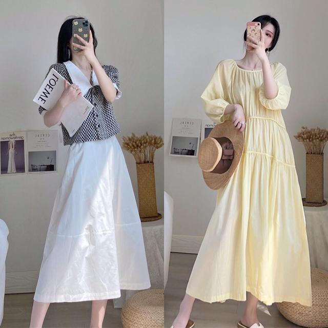 因为裙子比较的宽松,所以这件裙子不仅具有很强烈的休闲风,还非常的优雅。黄色比较的贴近肤色,所以不建议肤色比较黑的女人搭配这款裙子。