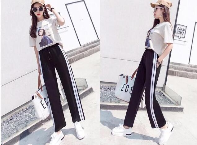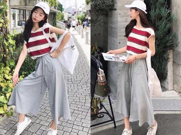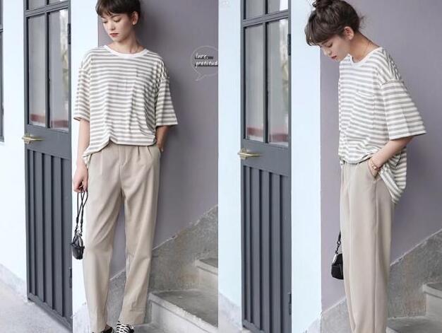 ins超火的阔腿裤,港味的款式,比较宽松的大码版型,修饰你腿不直的缺点,穿上身超显瘦的,任何身材的女生都可以驾驭,休闲的裤型,十分的慵懒风,高腰的绑带设计,提高了腰线,加上九分的裤长,搭配条纹的T恤很显高又显腿长的,随意外搭一对小白鞋,美极了。