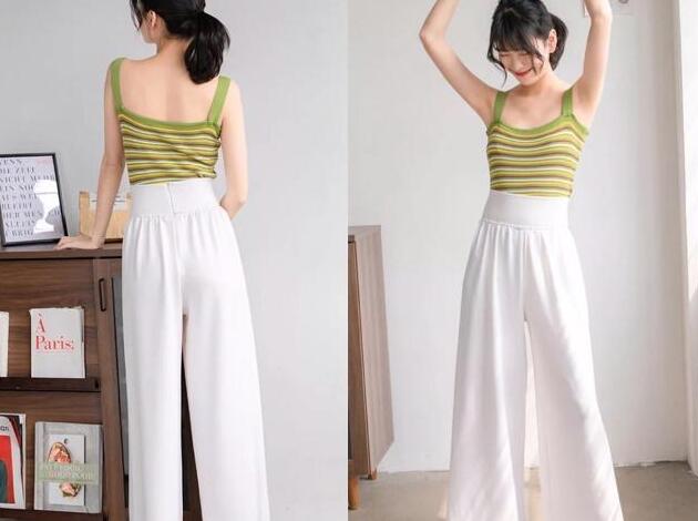 今年很流行的白色阔腿裤,垂感很强的面料,轻盈又舒适感,最重要的是很宽松的裤型,把你腿不直的缺点都遮掩住了,很休闲的拖把裤,超显高挑身材的,腿不直穿什么裤子好看?可松紧的腰间,十分的随性,搭配吊带的T恤,清爽又透气,这样穿很显瘦又好看。