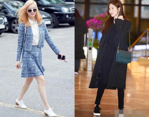 当然,女神也有比较懒的时候,想省心的时候徐贤会选择套装,像蓝色织花的西装套裙,内搭经典白衬衫,这样省时又不失该有的知性女神气质。除了套装,同色系也很省心,上下一体的黑色内搭简单又显瘦。