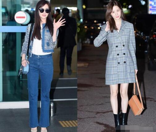 不仅是牛仔裤,格纹单品也是徐贤常用到的元素,超短格纹外套搭配牛仔喇叭裤和粉色高跟鞋,搭配知性不失甜美。除了格纹外套,还有A字格纹裙,中款长款的格纹搭配上黑色小皮靴,简单凸显女神气质。