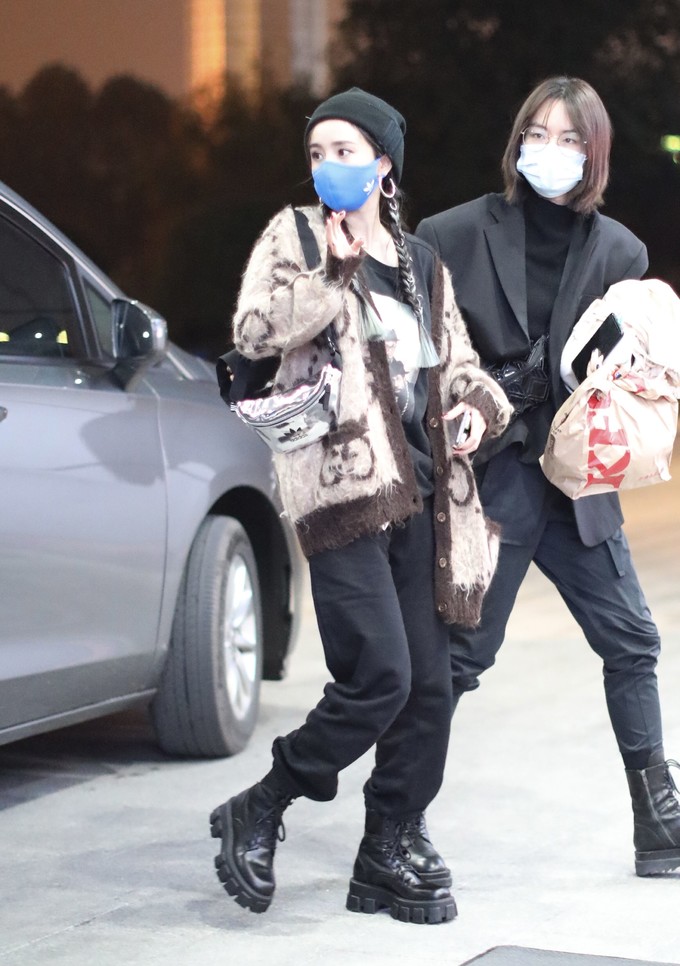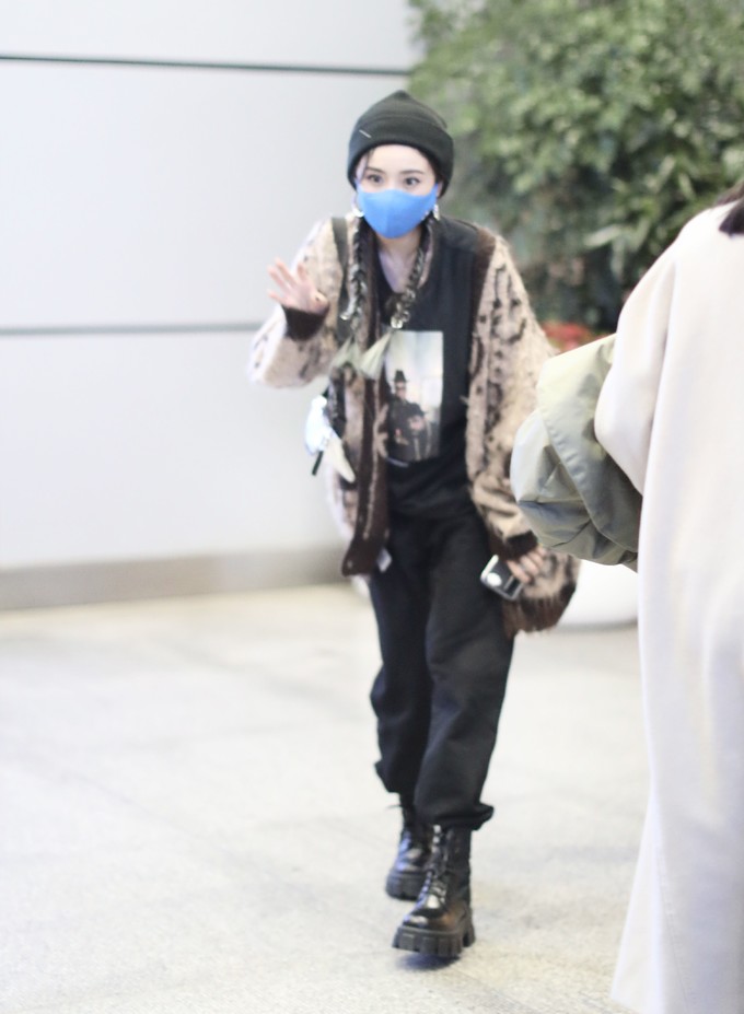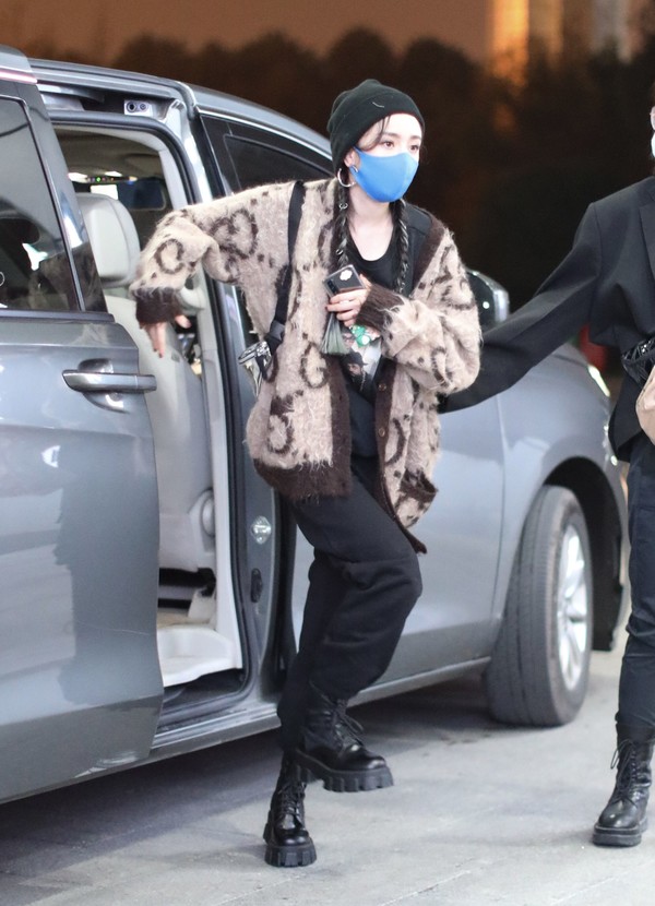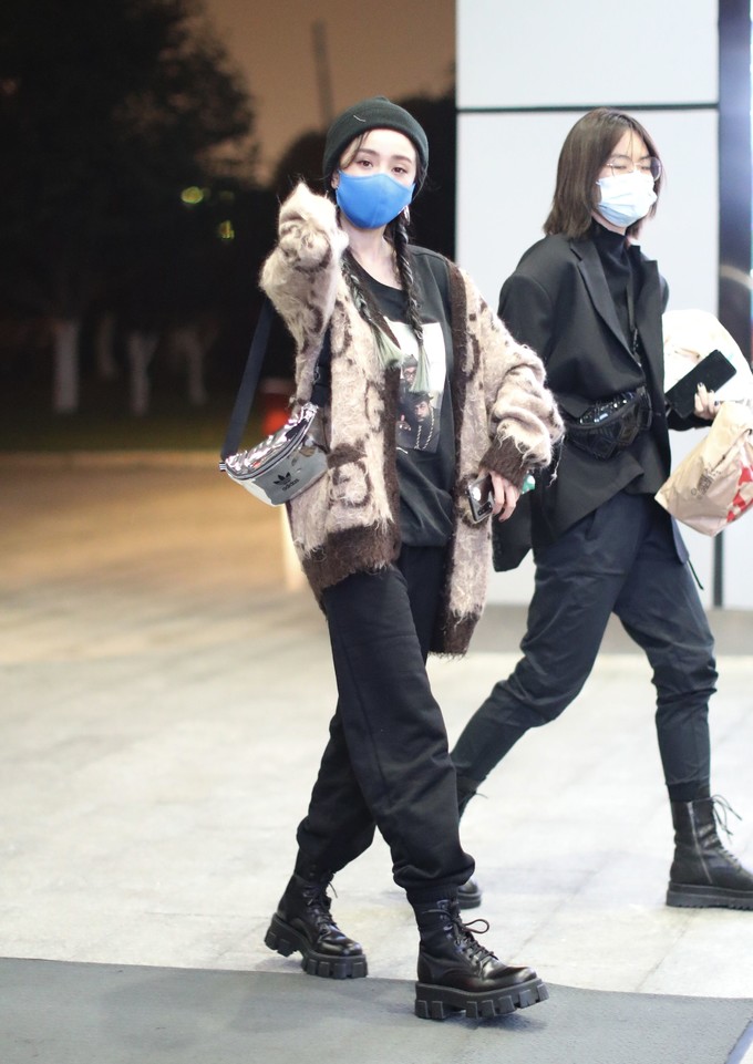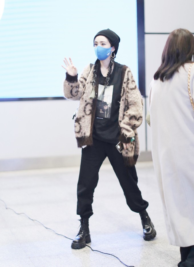 杨幂真任性,穿起球的开衫现身机场,配麻花辫马丁靴一点不土气