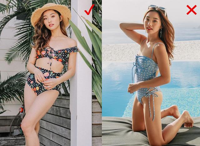 但是黄皮肤女生选购泳衣,难度系数比白皮肤女生高很多。像这种死亡珊瑚橘、深绿色和浅蓝色,千万不要选,穿上它们瞬间显黑十个度!不如和亚裔时尚博主Jenn Im学学泳衣颜色的选择!