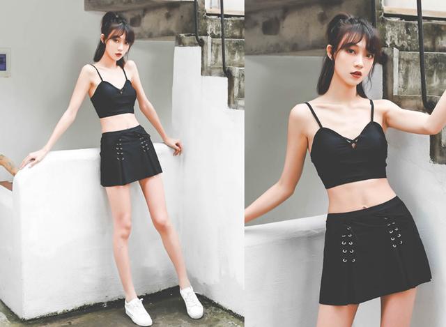 夏天穿黑色,难免会有些暗,所以选择分体式的黑色泳衣,尽量减小黑色在身上的覆盖面,会更轻盈。简约的背心式上衣,露脐设计更性感。下装以包臀A字形设计的短裙,修饰大腿更有型。整身黑色,给人高级感,同时还很显瘦,一举两得。皮肤黄穿什么颜色泳衣?