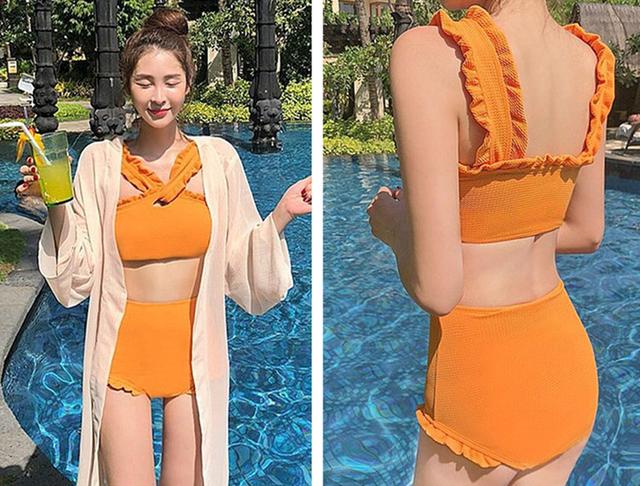 想要泳衣足够亮眼,最好选择亮色系的泳衣,显白又瞩目。这款泳衣的色系是我最爱的橙色,白皮的妹子穿上能够白上几个度,女装搭配。特别有气色。两件套的搭配穿脱方便,微露小蛮腰带着一点小性感。最有特点的是上一交错肩带的款式,修饰颈部线条,让上半身不那么单调。下身搭配的高腰三角底裤收腰提臀,裤脚边还带着小花边,特别俏皮~如果你是直筒型身材的妹子,最好是没有小肚子,选择这套泳衣穿起来一定好看。泡温泉的泳衣什么样子?