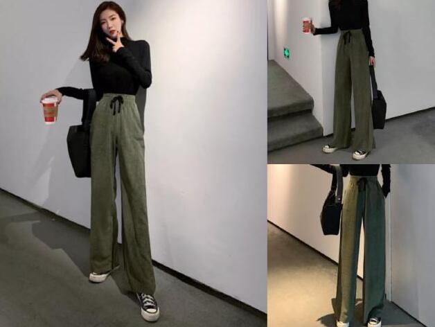穿烦了黑白灰的裤子,不妨试试这条军绿色的阔腿裤,它颜色不张扬同时也是很好搭配的,随便配一件黑色的毛衣就很好看了,这条裤子是长裤的长度,所以小个子不要轻易尝试,能驾驭得了妹子穿上满满都是腿的感觉,搭配一双帆布鞋,舒服又时尚!