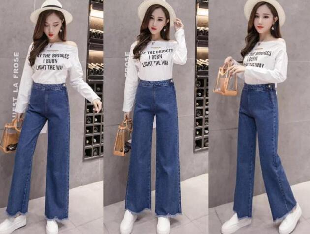 今年的牛仔裤更加多样化,比如这阔腿的裤脚,让女性更显得青春动人,个性又美丽,这款牛仔阔腿裤是侧边纽扣的设计,颠覆传统,个性新颖,裤脚流苏的设计美观又时尚,这样的一款裤子搭配一双白色的松糕鞋,显高舒适又时髦!